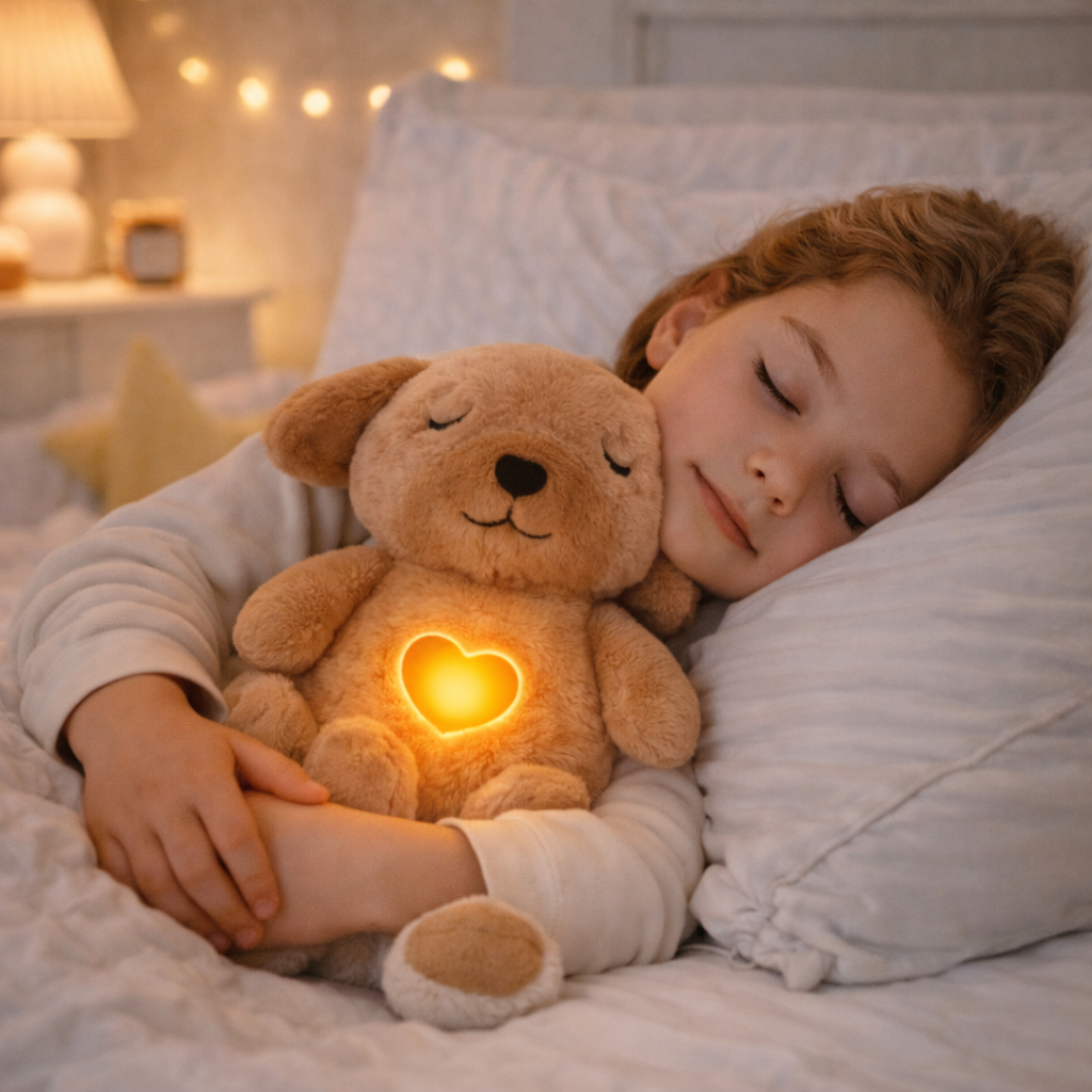 Delikatny ruch „oddychania” i kojąca muzyka tworzą naturalny rytm: przytulasz, słuchasz, oddychasz razem z nim… a ciało się rozluźnia.