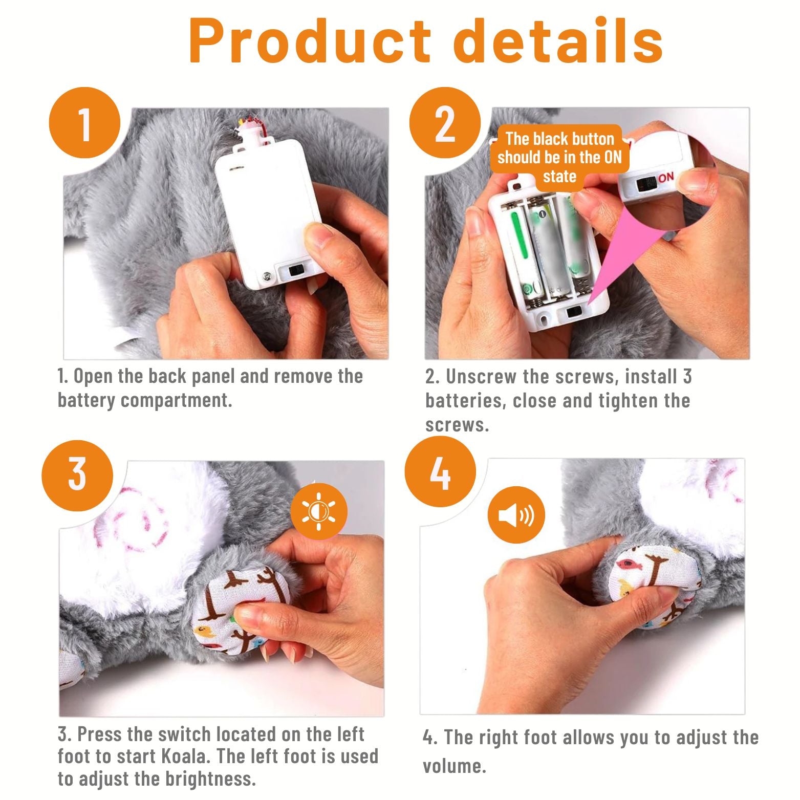 Uruchomienie: Naciśnij przycisk na stopie pluszaka (ikona „Power”), aby rozpocząć cykl relaksacyjny.